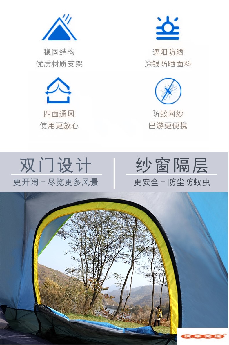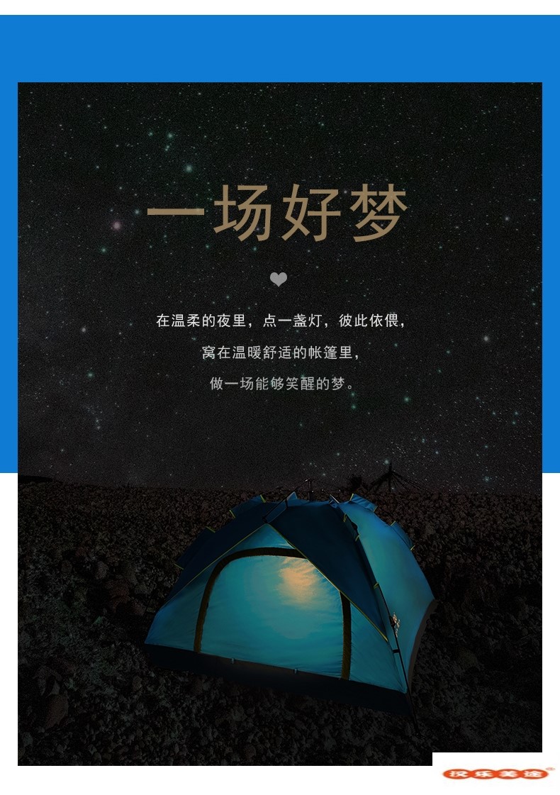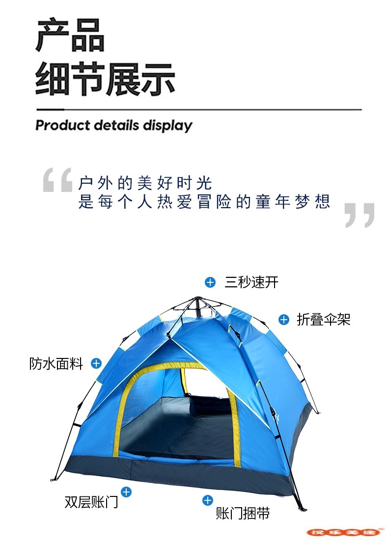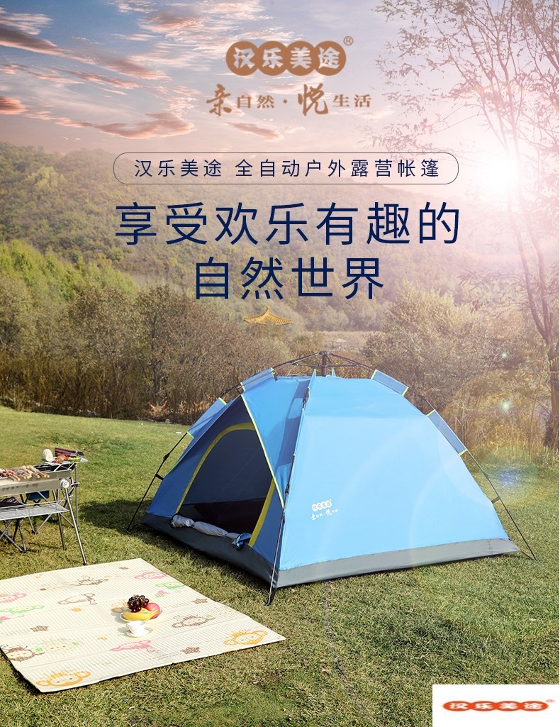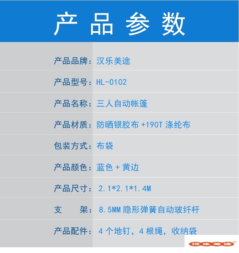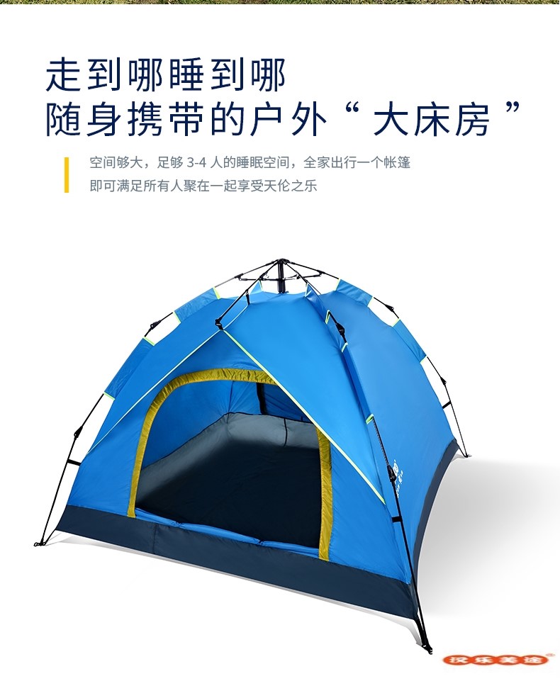 汉乐美途三人自动帐篷HL-0102 蓝色 2.1*2.1*1.4M